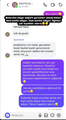 Çocukların kendi robotlarını yaptıktan sonra yaşadığı başarı duygusu ile daha yapıcı olduğu gözlemlendi.